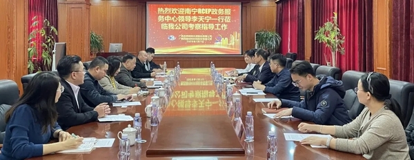 2025年1月7日,名燕集团迎来了南宁RCEP政务服务中心重要领导的到访,共同开启了一场关于合作、发展与未来的深入对话。此次到访的领导包括南宁市工业促进和中小企业服务中心原副主任李天宁,南宁RCEP政务服务中心负责人张德航,南宁RCEP政务服务中心外贸负责人石桂朋率等考察团10余人,他们的到来为名燕集团在2025年的新发展阶段提供了宝贵的指导和支持,他们的专业意见和政策引领,为公司的未来发展指明了方向,具有重要的战略意义。